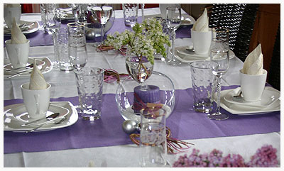 Als die Torten dann fertig waren, machte ich abends noch die entsprechende Tischdeko und Dieter half Tische und Decken von links nach rechts schieben bis es mir so passte wie es dann letztendlich stand. Und dann begab ich mich in mein Element und künstlerischte den Tisch bis er mir so gefiel wie er war. Ich wollte lila. Ja, ich! Und ich wollte das Josef es erst sieht als es fertig war. Er hatte Tränchen in den Augen :), ich glaube das war mein schönster Dank. Nun aber zum Sonntag. Ich hatte soviel abgenommen das mein Kleid meterweise um mich rumpasste. Also, umdisponieren. Gut wenn Frau noch Kleider von vor 13 Jahren im Schrank hängen hat, die passen dann wieder.
