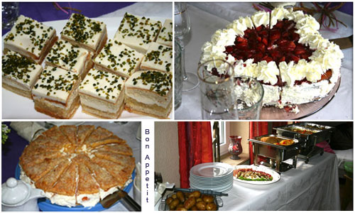 Kleine Futterkunde. Oben links ist Apfelmousse-Torte, rechts ist Erdbeer-Schoko-Torte, links ist Blätterkrokant-Mandarine und rechts Buffet. Da fehlen zwar noch die Salate, die haben wir selbst gemacht, aber da sind die Schüsseln auch nicht ganz so repräsentativ. Ich denke alles in allem ist es gelungen. Nun aber wieder zur Kirche. Es war schon bewegend wie die Jungs und die 2 Mädels da einmarschiert sind. Gut fand ich das sie keine Orgel benutzt haben, sondern YES, E-Gitarre, Schlagzeug, BAND! Es war einfach nur cool. Und es ist schon ein erhebendes Gefühl wenn so neue Erwachsene die Kirche betreten und die gesamze Kirche steht Spalier. Ich glaube ja die haben sich gefühlt wie im 7. Himmel. Dann kamen viele Lieder, zum Teil auch nur von der Band gesungen. Und als es dann kurz bevor die Einsegnung begann zur Frage kam, wollt ihr Junge Konformanten den Weg gehen und die Kids sagen sollten JA mit Gottes Hilfe, hat von denen keiner ein Wort rausgebracht. Ok sie haben es nicht geprobt :)! Der Pfarrer macht das dann aber ganz cool und sagte, gut dann will ich das nochmal wiederholen…worauf dann endlich auch die Kids anfingen aufzuwachen und dann ihr JA mit Gottes Hilfe trällerten.